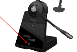 1. På JABRA-dosan – håll in hemknappen (ser ut som tre sträck på stationen)