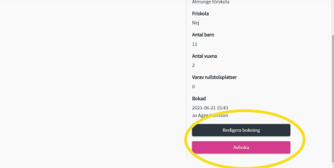 - Längst ner till höger har du två val: redigera bokning eller avboka. Klicka på Redigera bokning. Nu kommer du in på samma bokningssida som du fyllt i tidigare. Gör något av nedan: