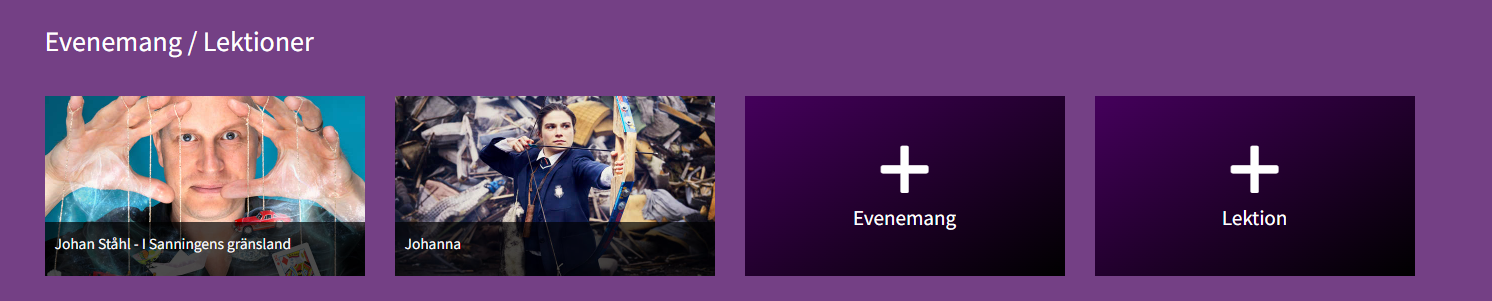 Scrolla sedan ner till evenemang/lektioner och välj föreställning